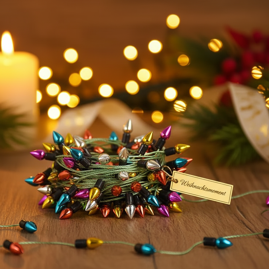 Wickeln Sie die Girlande locker um Tannenzweige oder Kerzengläser, kombinieren Sie sie mit goldenen Kugeln oder künstlichem Schnee ❄️ – schon entsteht eine liebevolle Winter-Szene voller Wärme und Glanz.